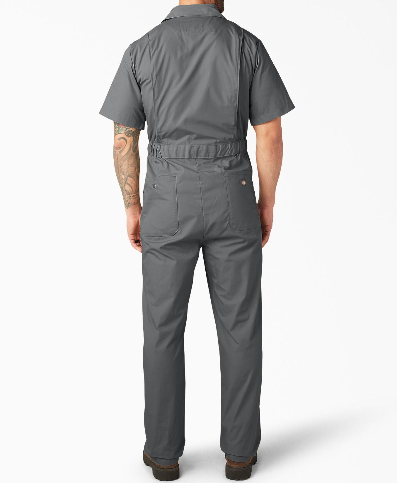 For nearly a century, Dickies' Men's Short Sleeve Coveralls have been a symbol of heritage and durability. Once made from heavy denim with button closures, they've been reimagined in a lightweight design that slips easily over your clothes. Updated with elastic waist inserts for enhanced comfort, these coveralls blend timeless style with modern function. The wrinkle-resistant fabric and stain-release finish offer low-maintenance care, while spacious back and snap-secured chest pockets provide ample storage. A classic redefined for today’s workplace.